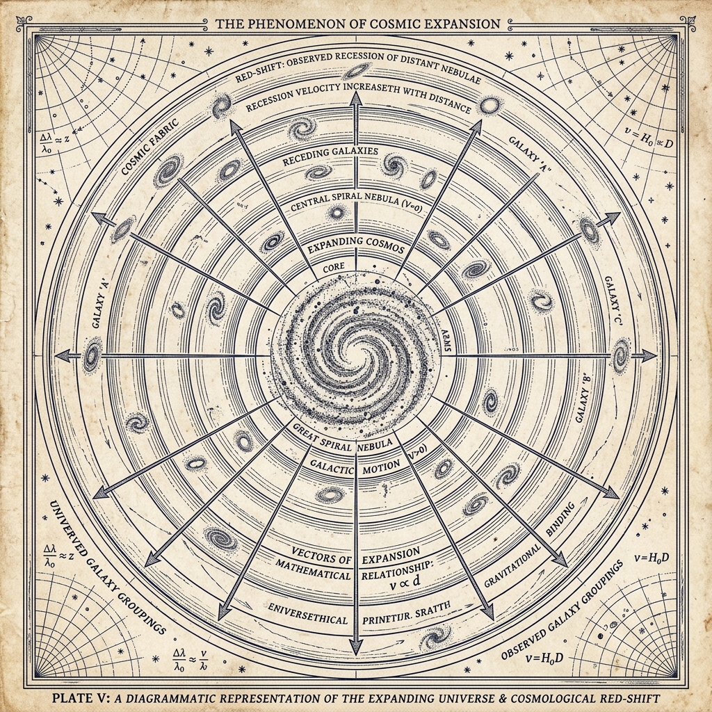 Galaxies were moving away from us. The further they were, the faster they receded. Edwin Hubble had measured the expansion rate. The universe was not static. It was growing. Georges Lemaître had already derived this from Einstein’s equations two years earlier — but Einstein had resisted the conclusion.